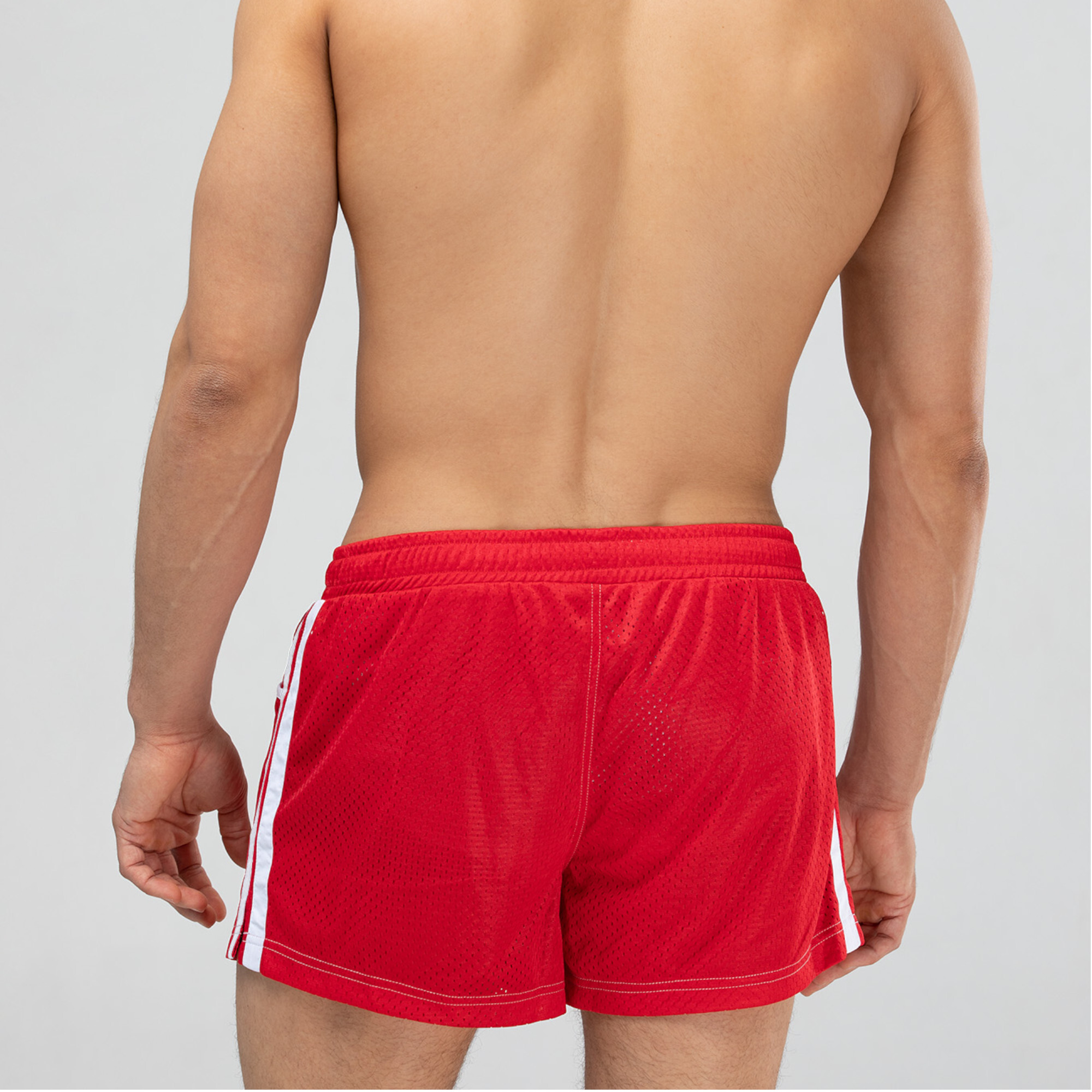 Мужские спортивные короткие шорты из быстросохнущего перфорированного двухслойного материала. Пояс на резинке дополнен регулирующим белым контрастным шнурком с брендированными металлическими эглетами. Удобные боковые карманы для мелочей. Контрастная белая отстрочка швов. Шорты имеют внутренние дополнительные сетчатые плавки для комфортного ношения. Эта модель отлично сидит и подходит не только для активного занятия спортом, но и для пляжа.
