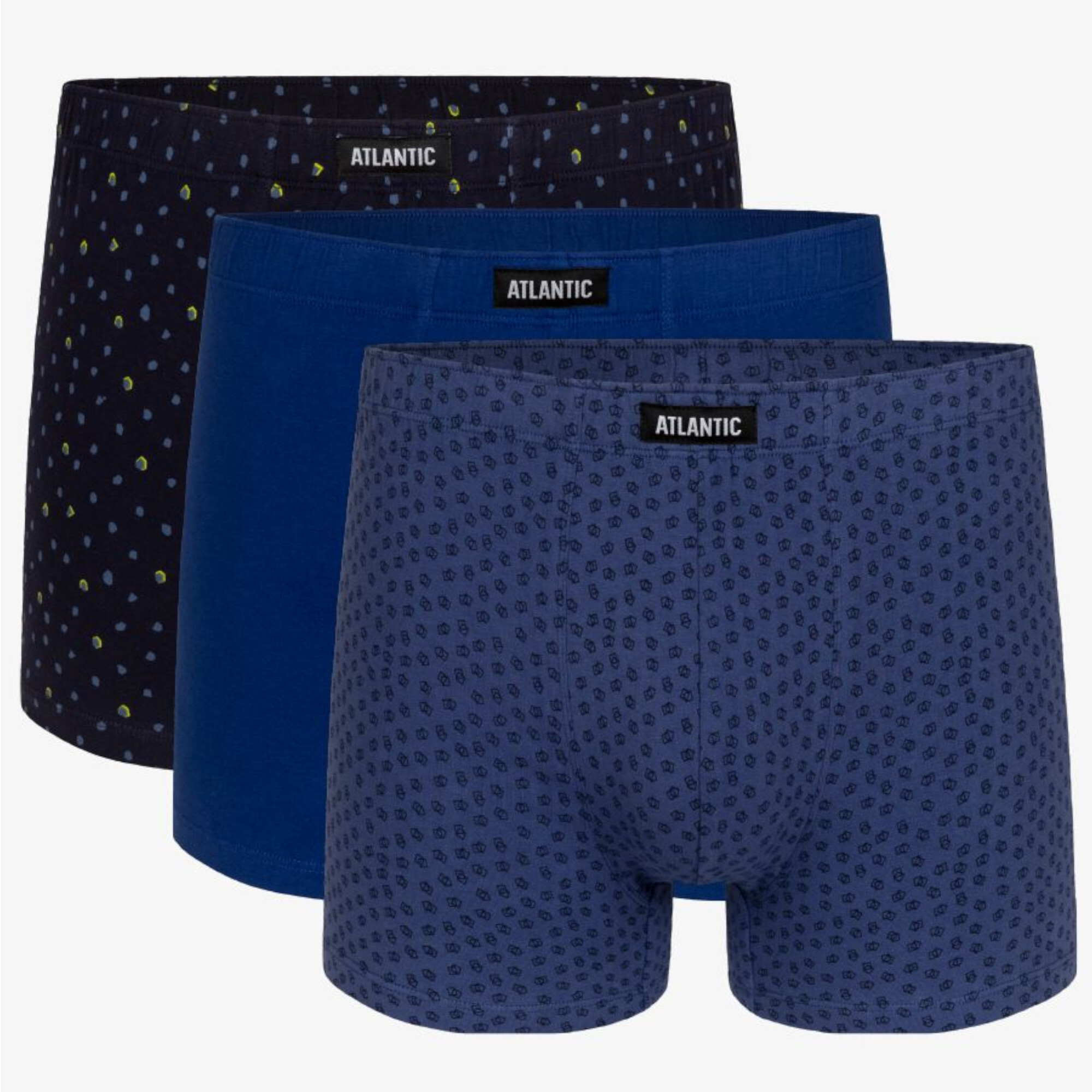 3MH-025/08 Трусы шорты Graphics - набор 3 шт., Набор из трёх трусов анатомического кроя разной расцветки в нейтральных цветах. Изготовлены из приятного на ощупь хлопка с добавлением эластана, 1 модель - однотонная, 2 модели - с классическим графическим принтом в абстрактном стиле. Универсальные шорты для повседневной жизни.