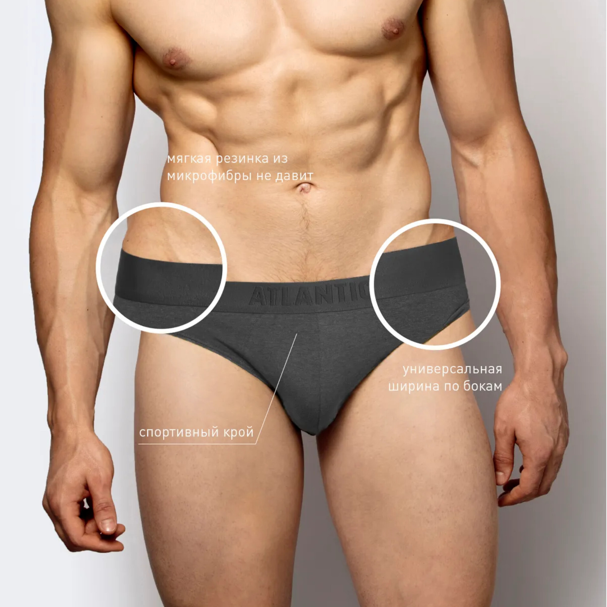 Мужские трусы брифы серые набор 2 в1 ATLANTIC Basic 2BMP-016