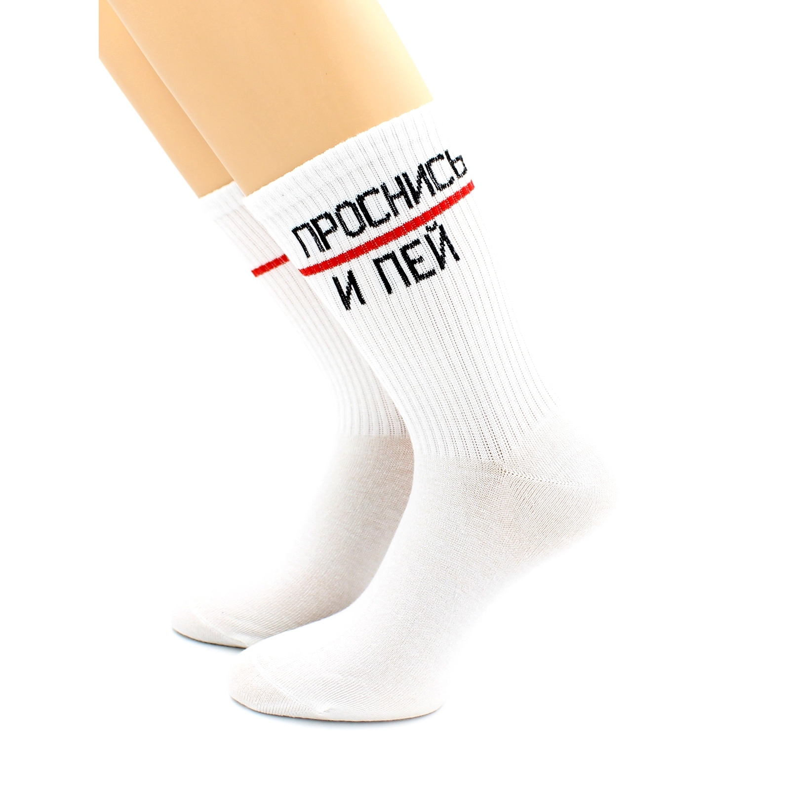 Носки с надписью "Проснись и пей" белые Hobby Line