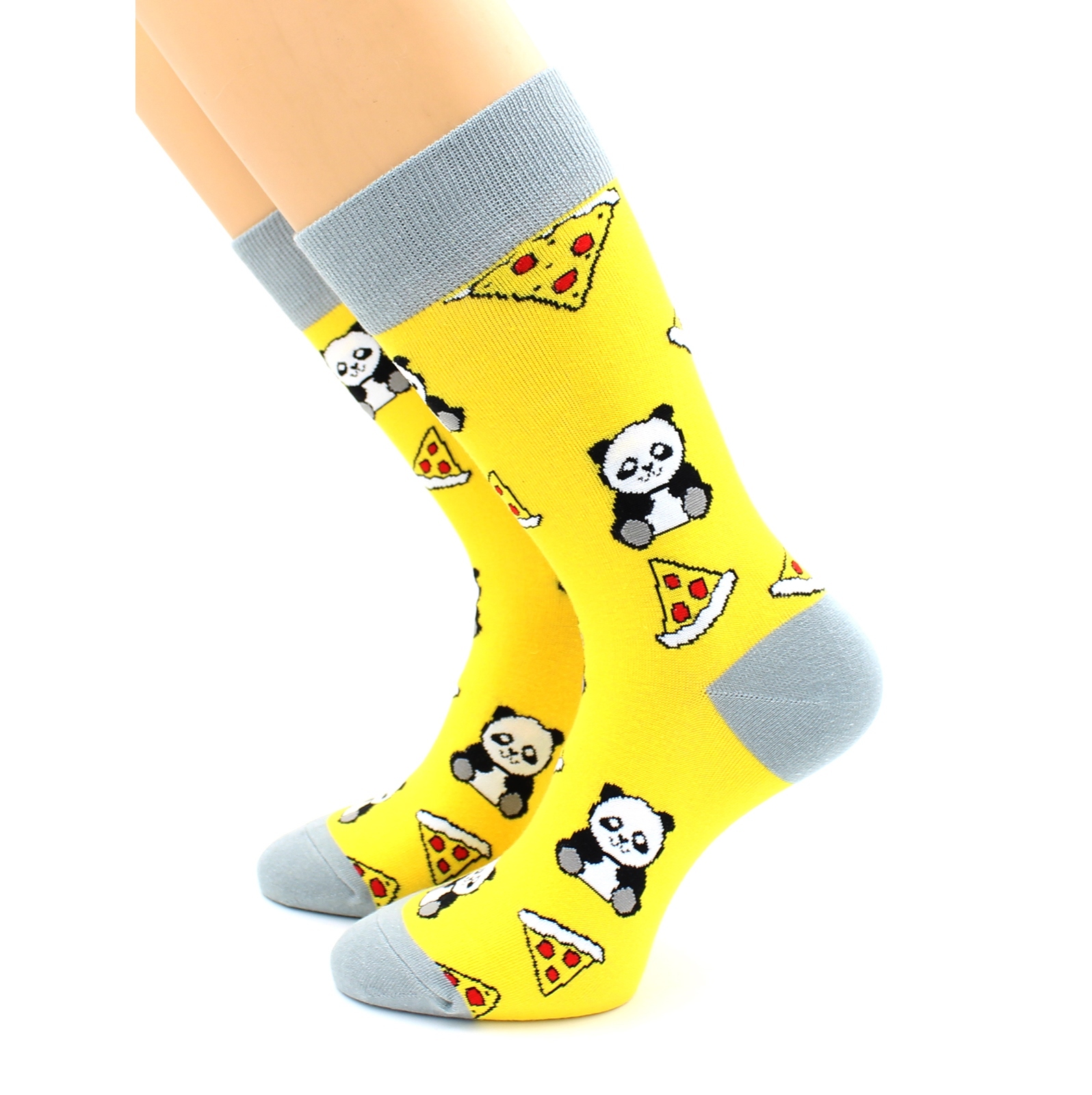 Носки с принтом "Панда с пиццей" желтые Hobby Line