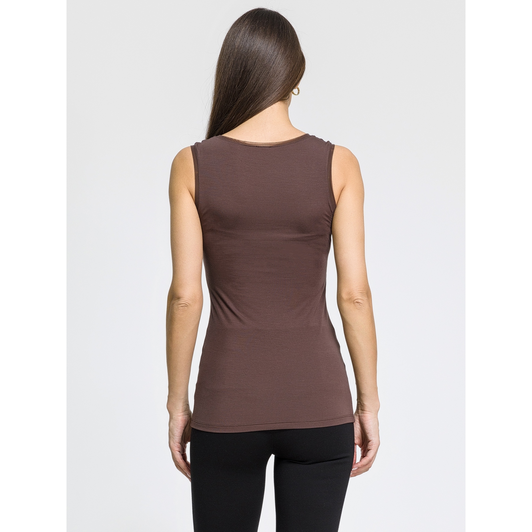 Женский топ с широкими бретелями выполнен из очень мягкого, неощутимого эластичного микромодала, который приятно ощущается на коже. Рукава и вырез декорированы тюлевой отделкой. Топ имеет облегающий крой. Идеально подходит для тех, кто любит иметь в своем гардеробе универсальную одежду. Абсолютный маст хэв в любом гардеробе. ,