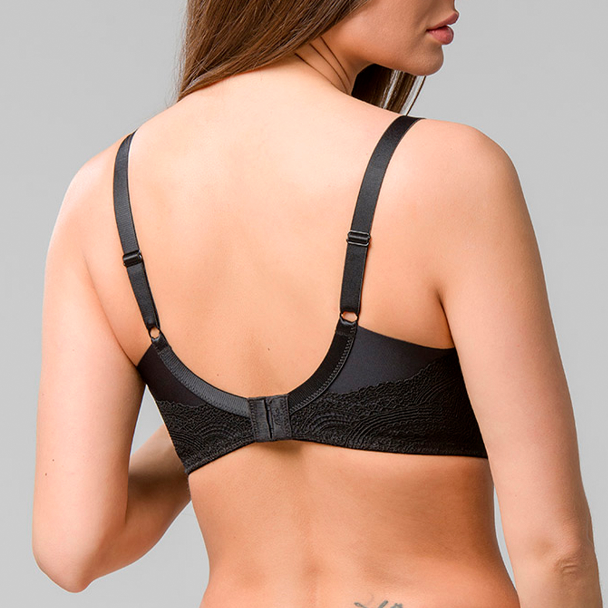 Бюстгальтер с укороченными на 2 см косточками для более удобной посадки. Кружевная отделка. Эластичная, дышащая ткань для легкой коррекции.